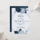 Elegant navy blue and dusty blue flowers and some beautiful leaves on a geometric frame bridal shower invitation