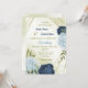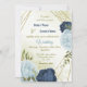 navy dusty blue flowers green leaves wedding invitation