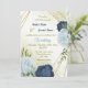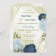 Beautiful wedding invitation featuring navy and dusty blue flowers and green leaves