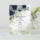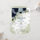 romantic navy and dusty blue flowers and green leaves botanical bridal shower invitation