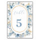 Navy Dusty Blue Gold Floral Spring Bloom Wedding Table Number