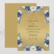 Deep navy and crisp white blossoms create a dramatic yet elegant cascade across a rich golden backdrop. Delicate foliage entwines the floral elements, evoking a sense of timeless romance and sophisticated charm. This design offers a luxurious feel for a memorable occasion.