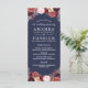 Navy Fall Marsala Blush Peony Wedding Menu Cards - feature a navy blue background with various peonies, roses, and other floral elements in shades of Marsala, burgundy, blue pink, grey and more. See the matching collection on this page to complete the look for your event.
