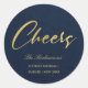 NAVY FAUX GOLD MINIMAL CALLIGRAPHY CHEERS ADDRESS CLASSIC ROUND STICKER