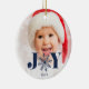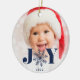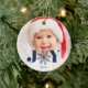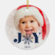 Navy | Festive Joy Holiday Photo Ceramic Ornament