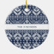 Sweet and festive holiday ornament features your favourite photo with "JOY" overlaid in navy blue lettering. A snowflake illustration takes the place of the "O." Personalise with the year beneath. Ornament reverses to reveal a festive Nordic sweater pattern.