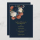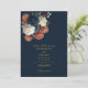 Invite your guests to your magical union with this navy botanical garden wedding invitation. The deep navy background is adorned with an artful display of florals in shades of rust, cream, and teal, creating a luxurious and captivating look. This all-in-one format ensures all your wedding details are beautifully presented in one place, making it easy for your guests to find everything they need. Designed for couples who appreciate intricate beauty and sophisticated style, this invitation is a beautiful prelude to your wedding day. It’s a statement piece that reflects the beauty of your commitment.