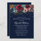 Navy Floral Glitter Burgundy Bridal Shower Invitation