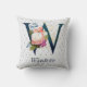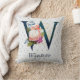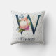 Navy Floral Monogram W Throw Pillow