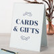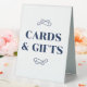 Create your own simple navy blue modern cards and gifts table tent sign for your wedding.