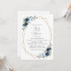 Invite friends and family in style and set the tone for your special day with this charming baby shower invitation. Design features navy and blue watercolor flowers, greenery and gold frame on white background.