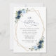 Invite friends and family in style and set the tone for your special day with this charming birthday invitation. Design features navy and blue watercolor flowers, greenery and gold frame on white background.