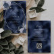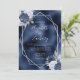 Navy Foil Dusty Blue Silver Floral QR Code Wedding Invitation
