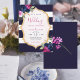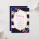 Navy and fuchsia floral Wedding invitation. No parents. Elegant. Modern.