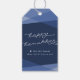 Dress up your Hanukkah gifts with these elegant, modern tags in rich navy blue. Overlapping geometric shapes in gradient shades of blue provide the perfect backdrop for "Happy Hanukkah" in modern white handwritten style typography and two lines of your custom text.