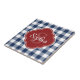 A trendy navy blue and white gingham pattern background with a Moroccan quatrefoil label frame on top featuring a customisable name / monogram initial letter template.