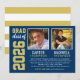 Celebrate two graduates with this bold double graduation party invitation featuring oversized "Grad Class of" typography with a striking year display alongside side-by-side senior portraits. The sporty mix of block lettering, script, and varsity-style numbers gives this design a spirited, energetic feel perfect for siblings or twins. Fully customisable text makes it easy to personalise names, school details, and all your party information.