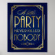 Navy Gold Art Deco A LITTLE PARTY Sign Print