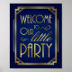 Navy Gold Art Deco WELCOME TO OUR LITTLE PARTY Poster