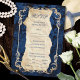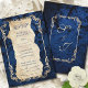 Navy gold baroque wedding elegance captures the grandeur of a timeless, luxurious celebration. This sophisticated RSVP card design features a deep navy velvet background adorned with ornate antique gold scrollwork for a regal, high-end feel. The aged parchment centerpiece adds vintage charm, making it ideal for formal ballroom weddings, elegant cathedral ceremonies, or lavish estate receptions. Perfect for couples seeking stationery that blends opulence with romance, this baroque-inspired style transforms your wedding suite into a keepsake guests will treasure. The navy and gold palette is a favourite for black-tie weddings, winter celebrations, and royal-themed events, while the intricate baroque detailing adds a touch of European artistry. Fully customisable to match your wedding vision, it pairs beautifully with matching invitations, details cards, and envelopes for a coordinated suite that tells your story from the first impression. Designed for brides who want more than just paper — they want a statement of elegance, tradition, and luxury that sets the tone for an unforgettable day.