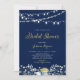 Celebrate your special day with this modern bridal shower invitation. This design features beautiful string lights, flower wreath and stylish script lettering" Bridal Shower" with gold texture. The background colour is set to a navy blue but you can customise it to any colours.