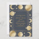 The invitation text is presented in a refined combination of modern calligraphy and classic serif fonts, embossed in gold foil to complement the celestial design. The details of the bridal shower, including the bride's name, date, time, and venue, are elegantly arranged, ensuring that all important information stands out.