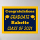 Honor your grad with this Navy Gold Congratulation Graduation Poster. Personalize with your graduate's name and class year. This minimalist school colors poster has plenty of school spirit.