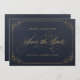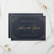 Elegant handwriting calligraphy script with flourish frame in navy blue and faux gold colour, clean and formal, great wedding save the date cards for vintage wedding, traditional wedding, and classic wedding all year round.