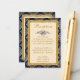 This elegant navy blue, ivory, and gold damask wedding reception enclosure card has a moveable ornate blue scroll and a gold FAUX glitter PRINTED (not real glitter) border on it that matches the wedding invitation shown below. It is designed on the more expensive eggshell cardstock to match with the felt paper invitations. If you change the invitation paper to something else, you may be able to select the basic white cardstock here and still have it match nicely. You can also use it for directions, accommodations, a gift registry card, a wishing well card, wedding website card, or for an information card. If there are any other matching items you require, please email your request to niteowlstudio@gmail.com.