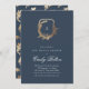 navy gold floral monogram crest bridal shower invitation