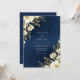 Elegant floral elements in creamy white and rich gold adorn a deep navy background. This design evokes a sophisticated and romantic atmosphere, perfect for a refined occasion. Delicate blossoms and flowing foliage create a timeless aesthetic.