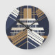Navy Gold Geometric Maritime Ocean Liner Art Deco Round Clock