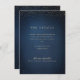 Faux gold glitter on dark navy blue background , and sophisticated couple's monogram on the back, Simple and elegant. Great Wedding details card for modern classic wedding, and formal wedding.