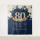 Navy Gold Greenery Floral 80th birthday backdrop Tapestry
