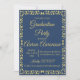 Simple yet stylish graduation party invitations feature a gold leaf vine around the edge and modern gold text on a navy blue background. A classy and elegant look for a high school or college graduate. Customise the blue and gold graduation invitation with a photo of the graduating senior, their school and year of graduation on the back of the invite.