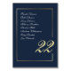 This minimal navy blue, gold and white table number card is minimal and elegant. The script calligraphy table number is accentuated by border that frames the number. Add your guests' names to create a seating chart as well.