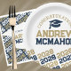 Navy Blue & Bronze Gold Personalised Graduation Paper Plates - Half Repeating Congratulations