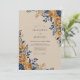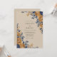 This design features a sophisticated palette of deep navy blue and golden ochre tones against a warm tan background. Intricate painted roses and delicate leafy sprigs create a moody and atmospheric aesthetic. These botanical elements evoke a sense of vintage elegance and rustic charm, perfect for a cool-weather event.