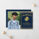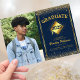 Celebrate the class of 2025 in unparalleled style and elegance with our navy blue graduation announcement card. This modern masterpiece is adorned with a shimmering gold glitter overlay, capturing a memorable image of the new graduate. The card elegantly highlights the graduate's name and their future aspirations alongside a motarboard with the class year evoking a sense of achievement and pride. It's more than a card - it's a keepsake that captures a pivotal milestone in a graduate's life.