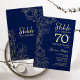 Navy Gold Surprise 70th Birthday Invitation. Minimalist modern feminine design features botanical accents and typography script font. Simple floral invite card perfect for a stylish female surprise bday celebration.