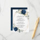 Dark navy blue floral wedding details card featuring elegant bouquet of navy blue, royal blue , white , gold, champagne ivory, blush colour rose , hydrangea, ranunculus, peony, flower buds and sage green eucalyptus leaves and elegant watercolor with round glitter geometric neutral frame. Please contact me for any help in customisation or if you need any other product with this design.