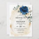Dark navy blue floral wedding Invitation featuring elegant bouquet of navy blue, royal blue , white , gold, champagne ivory, blush colour rose , hydrangea, ranunculus flower buds and sage green eucalyptus leaves and elegant watercolor with round glitter geometric frame. Please contact me for any help in customisation or if you need any other product with this design.
