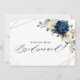 Dark navy blue floral will you be my bridesmaid proposal Invitation featuring elegant bouquet of navy blue, royal blue , white , gold, champagne ivory, blush colour rose , hydrangea, ranunculus, peony, flower buds and sage green eucalyptus leaves and elegant watercolor with round glitter geometric neutral frame. Please contact me for any help in customisation or if you need any other product with this design.
