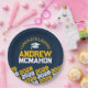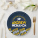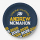 Navy Blue & Gold Yellow Personalised Graduation Paper Plates - Half Repeating Congratulations
