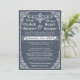 Here are Gothic Victorian inspired wedding invitations in navy blue featuring ornaments, scrolls, scroll work, a banner, a floral scroll frame, damask pattern background, and other old world style details all inspired by the Gothic mediaeval period and Victorian era. Elegance and refinement at its finest. You can customise the sample text fields to your liking.