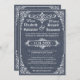 Here are Gothic Victorian inspired wedding invites in navy blue featuring ornaments, scrolls, scroll work, a banner, a floral scroll frame, damask pattern background, and other old world style details all inspired by the Gothic mediaeval period and Victorian era. Elegance and refinement at its finest. You can customise the sample text fields to your liking.