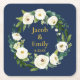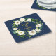 Navy Greenery Gold Personalised Names Date Wedding Square Paper Coaster