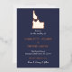 Artistic, map of Idaho wedding design with choices gold,silver and rose gold foil. Background colour is customisable