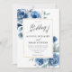 Navy indigo blue floral modern elegant wedding invitation