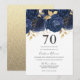 Navy Indigo Blue & Gold Floral 70th Birthday Party Invitation
